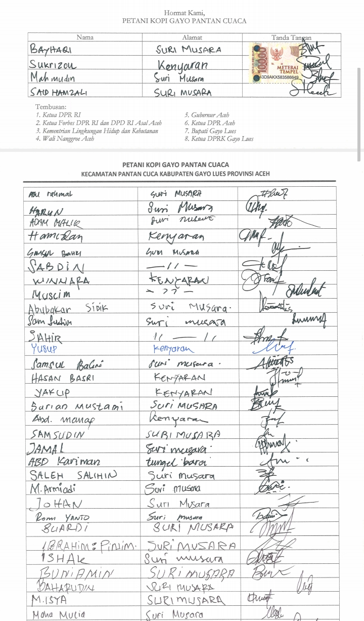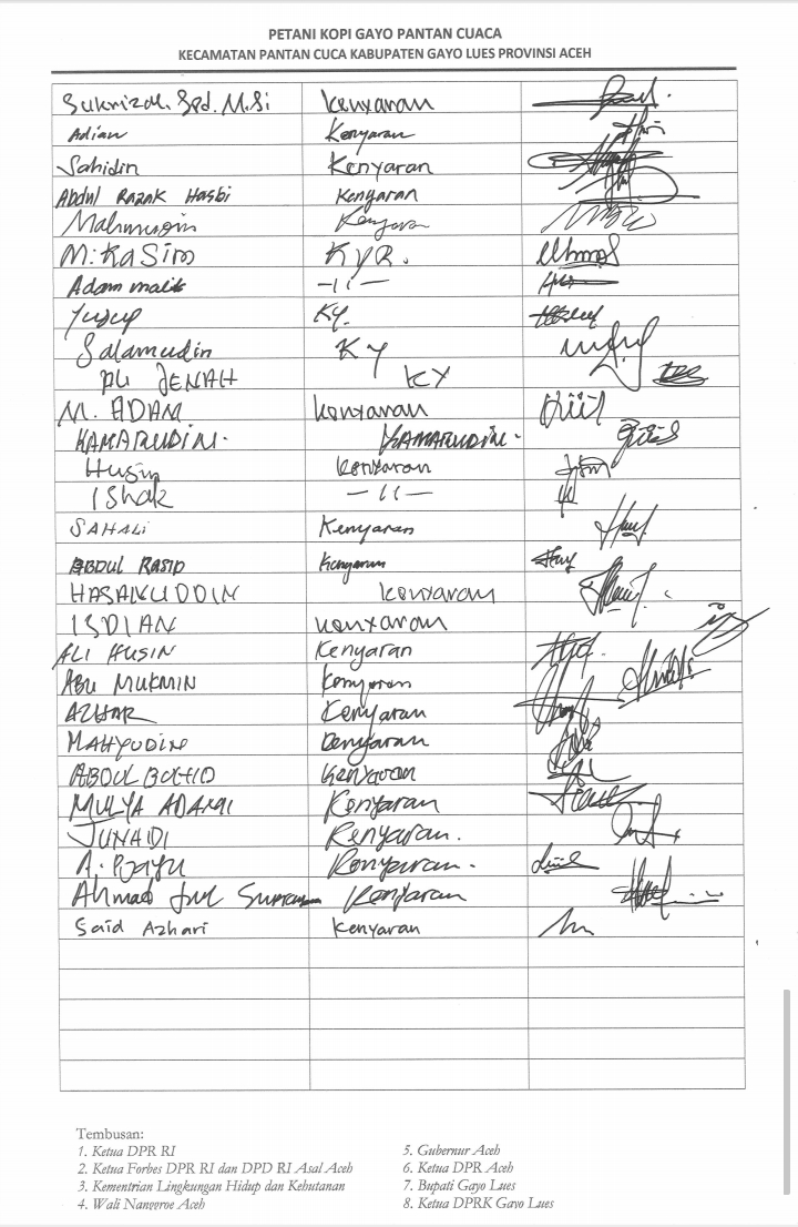 Lebih lanjut, Baihaqi Menyampaikan,Wilayah kami di Pantan Cuaca merupakan perkebunan penghasil kopi, dampak dari pencemaran lingkungan sangat berpengaruh Untuk hasil Produksi dan kwalitas Kopi Katanya “Bagi kami masyarakat petani kualitas kopi mempengaruhi Nilai jual,serta hasil Produksi, Kami mempertanyakan efektivitas jaminan yang diwajibkan terhadap perusahaan tambang.