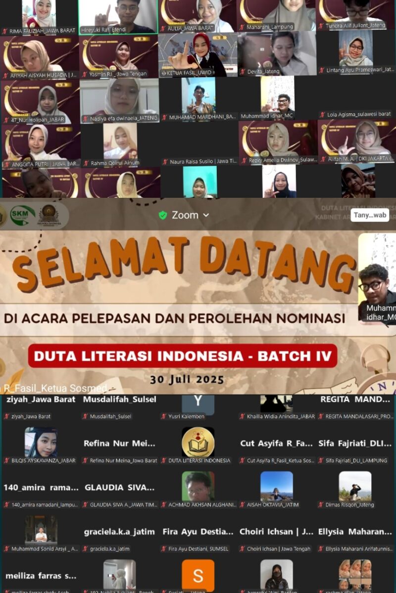 Malam penuh haru menyelimuti ruang virtual Zoom saat pelepasan Duta Literasi Indonesia (DLI) Batch IV Tahun 2025 yang secara resmi telah digelar pada Rabu malam (30/07/2025) pukul 19.30 WIB. Kegiatan yang dihadiri oleh seluruh fasilitator dan 194 para DLI dari berbagai daerah se Indonesia ini berlangsung khidmat dan emosional, menandai berakhirnya masa jabatan para DLI setelah melalui perjalanan panjang perjuangan literasi.