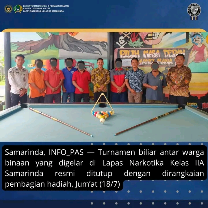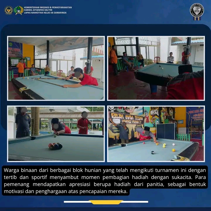 TIMELINES INEWS INVESTIGASI, Samarinda, Turnamen biliar antar warga binaan yang digelar di Lapas Narkotika Kelas IIA Samarinda resmi ditutup dengan dirangkaian pembagian hadiah, Jum’at (18/7)