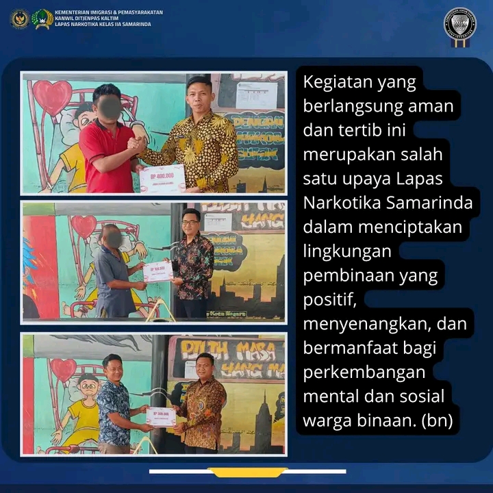 Kegiatan yang berlangsung aman dan tertib ini merupakan salah satu upaya Lapas Narkotika Samarinda dalam menciptakan lingkungan pembinaan yang positif, menyenangkan, dan bermanfaat bagi perkembangan mental dan sosial warga binaan, Terangnya.