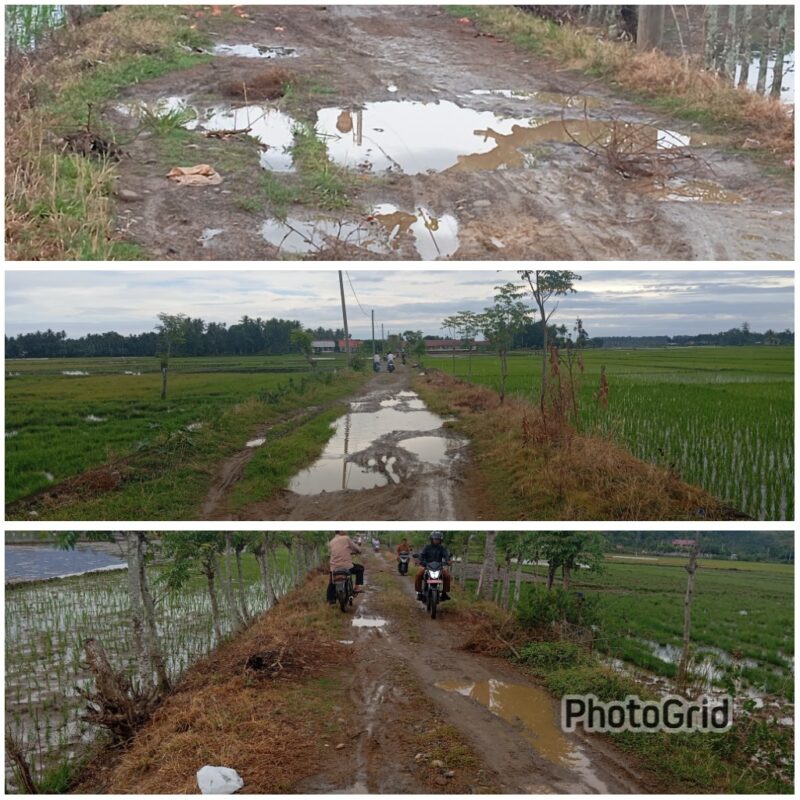 Jalan yang sempit dan berada di antara areal persawahan ini juga menjadi satu-satunya jalur penghubung masyarakat dengan fasilitas umum. Dengan kondisi rusak seperti sekarang, aktivitas pendidikan dan ekonomi warga sangat terganggu.