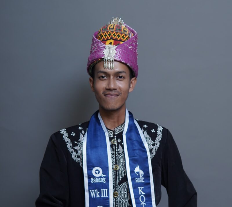 TLII>>Ari Maulana, mahasiswa Program Studi (Prodi) Komunikasi dan Penyiaran Islam (KPI) Fakultas Dakwah dan Komunikasi (FDK) Universitas Islam Negeri (UIN) Ar-Raniry, Banda Aceh berhasil meraih posisi Wakil III Duta Wisata Kota Sabang 2025.