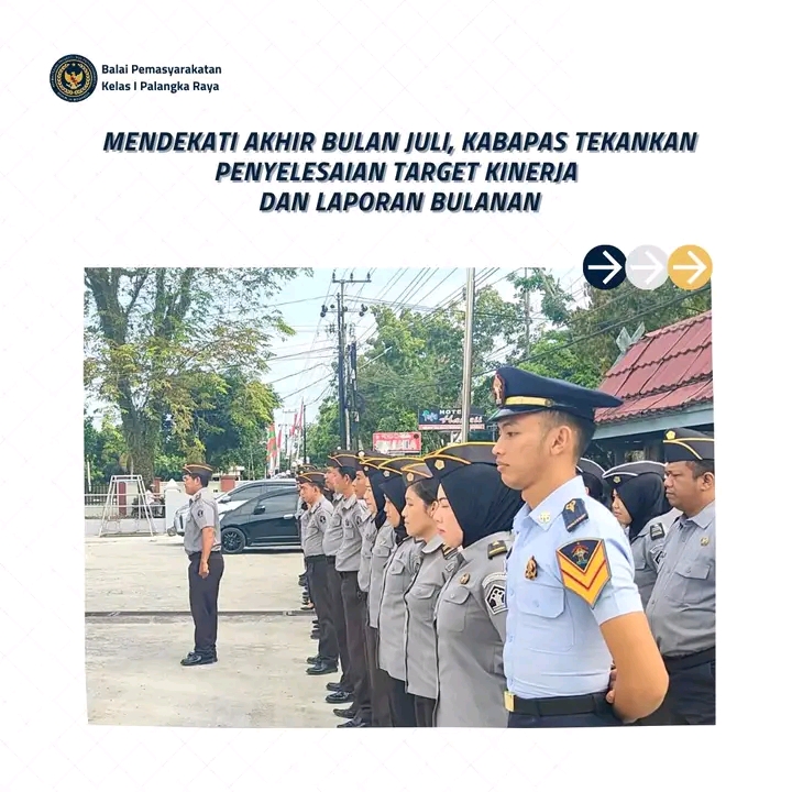 TIMELINES INEWS INVESTIGASI, Palangkaraya Memasuki pekan terakhir bulan Juli 2025, Balai Pemasyarakatan (Bapas) Kelas I Palangka Raya menggelar apel pagi rutin yang dipimpin langsung oleh Kepala Bapas, Theo Adrianus, pada Senin (28/07/2025). Kegiatan ini merupakan bagian dari upaya penguatan disiplin kerja dan pengawasan terhadap pelaksanaan tugas di lingkungan Bapas Palangka Raya.