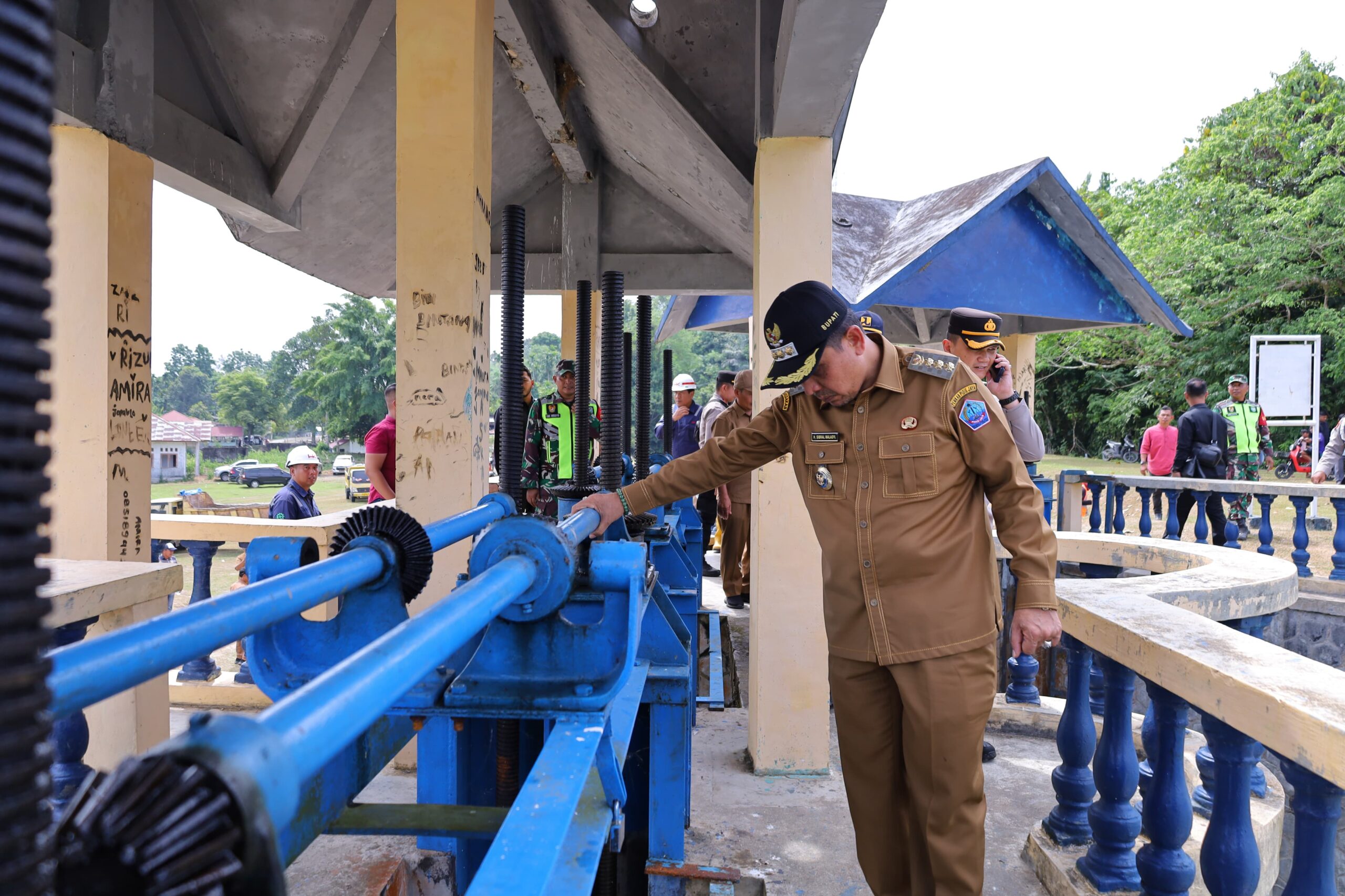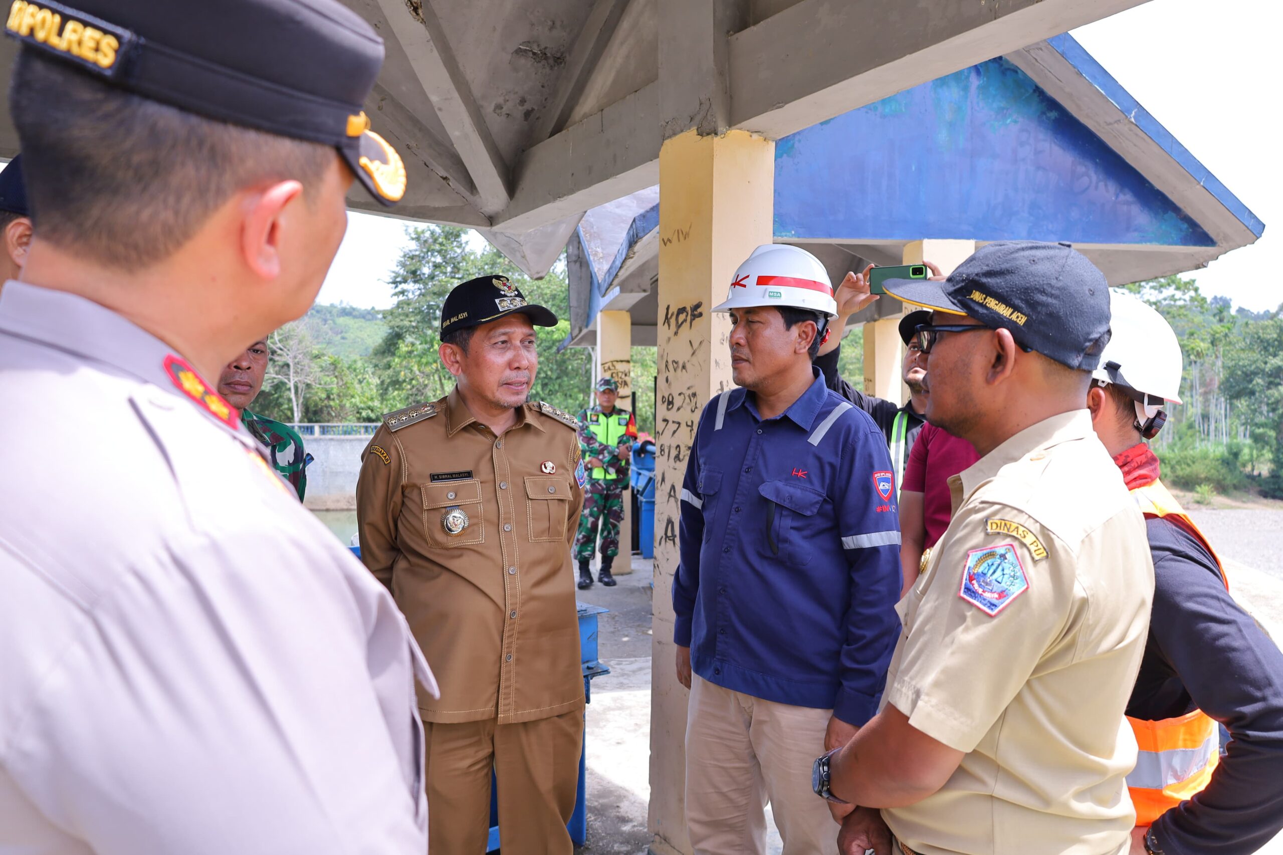 Bupati Pidie Jaya H Sibral Malasyi MA Bersama Kapolres Pidie Jaya AKBP A Faisal Pasaribu, SH, S.IK, MH, Kepala Dinas Pekerjaan Umum Ir Orizal Safitri ST MT dan Kepala Dinas Pertanian Ketahanan Pangan Muzakir meninjau Irigasi Cubo Tringgadeng,Senin (7/07/2025). Irigasi Cubo Trienggadeng sekitar 1909 hektar lebih lahan sawah garapan masyarakat. Dengan irigasi ini akan mengaliri sawah dan kita harapkan dapat lebih produktif tentunya meningkatkan kesejarteraan masyarakat sekitar.