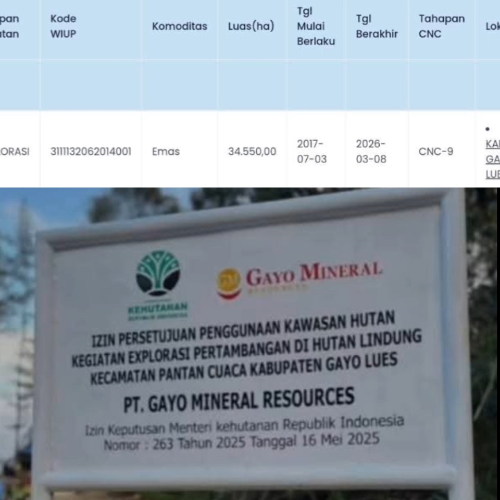 TLii | ACEH | GAYO LUES – Kamis, 24 Juli 2025 – Pemantau Keuangan Negara (PKN) Gayo Lues mengungkapkan kejanggalan serius dalam izin eksplorasi tambang emas yang dikelola oleh PT Gayo Mineral Resources di wilayah Kecamatan Pantan Cuaca. Berdasarkan hasil pantauan yang disampaikan oleh Suterisno dari PKN Kepada Media, izin eksplorasi yang diberikan kepada perusahaan tersebut mencakup area seluas 34.550 hektare, sementara total luas wilayah Kecamatan Pantan Cuaca hanya 29.507 hektare.