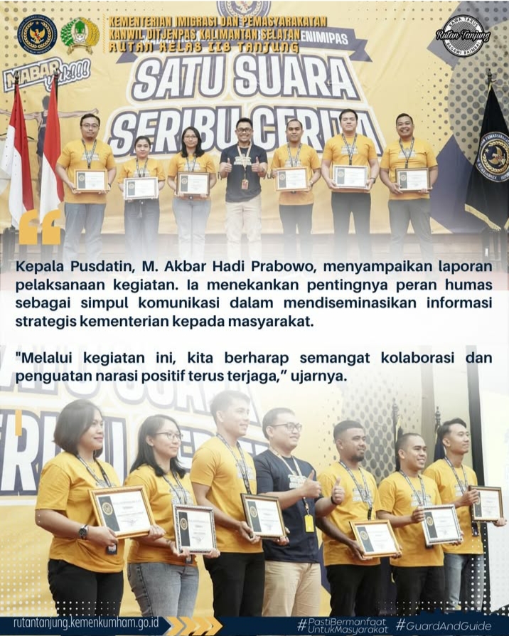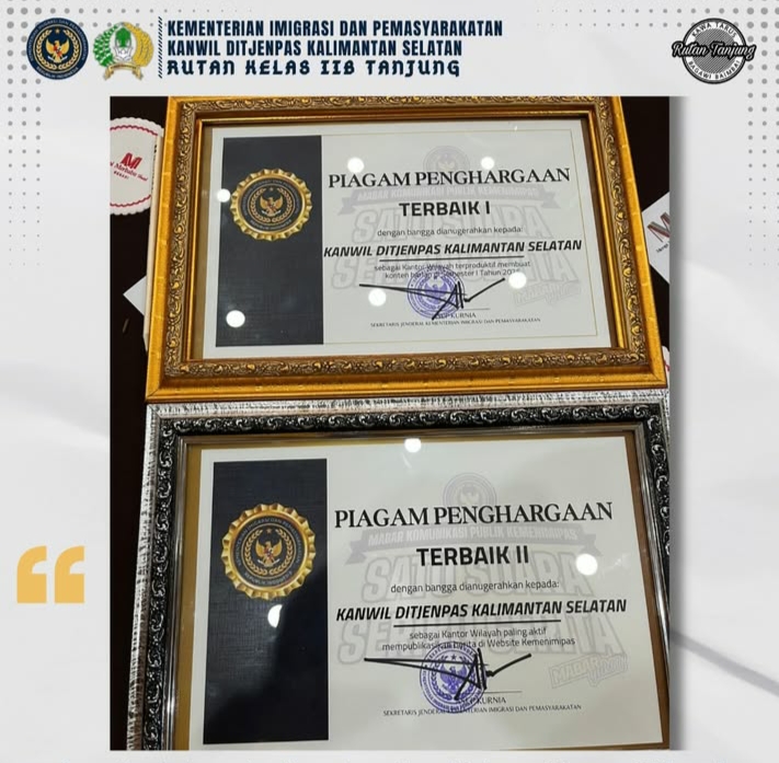 TIMELINES INEWS INVESTIGASI, Kantor Wilayah (Kanwil) Direktorat Jenderal Pemasyarakatan (Ditjenpas) Kalimantan Selatan meraih dua kategori juara dalam bidang komunikasi publik Semester I Tahun 2025 Kementerian Imigrasi dan Pemasyarakatan (Kemenimipas). Dua kategori yang berhasil diraih yaitu: terbaik pertama terproduktif membuat konten harian dan terbaik kedua teraktif mempublikasikan berita di website kementerian.