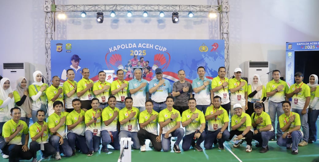 TLII>>Banda Aceh — Kapolda Aceh Irjen Pol. Dr. Achmad Kartiko secara resmi membuka Kejuaraan Badminton Kapolda Aceh Cup 2025 di Gedung Olahraga (GOR) KONI Aceh, Kamis, 24 Juli 2025. Turnamen dalam rangka Hari Bhayangkara ke-79 itu diwarnai opening dance yang dipersembahkan oleh Wonderlust Dance Company, yang disusul devile atlet.