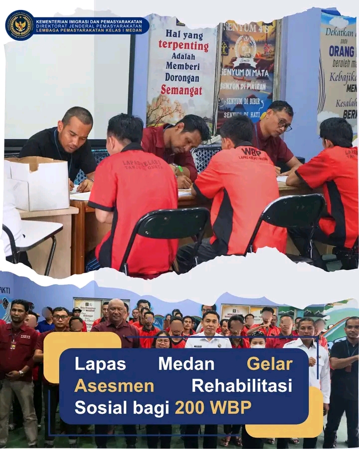 TIMELINES INEWS INVESTIGASI, Medan, 30 Juli 2025 Lembaga Pemasyarakatan (Lapas) Kelas I Medan terus menunjukkan komitmennya dalam mendukung pemulihan dan reintegrasi sosial Warga Binaan Pemasyarakatan (WBP) melalui program rehabilitasi sosial. Bekerja sama dengan Fokus Rehabilitasi Narkotika Indonesia, Lapas Kelas I Medan menggelar kegiatan asesmen rehabilitasi sosial yang berlangsung selama tiga hari, dimulai pada Rabu (30/07/2025) di Aula Lapas.