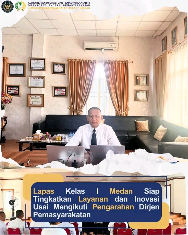 TIMELINES INEWS INVESTIGASI, Medan,14 Juni 2025 Lembaga Pemasyarakatan (Lapas) Kelas I Medan menyatakan komitmennya untuk meningkatkan kualitas layanan dan inovasi di bidang pemasyarakatan. Komitmen tersebut ditegaskan usai mengikuti pengarahan Direktur Jenderal Pemasyarakatan Kementerian Imigrasi dan Pemasyarakatan (Kemenimipas), Drs. Mashudi, yang digelar secara daring pada Senin (14/6/2025).