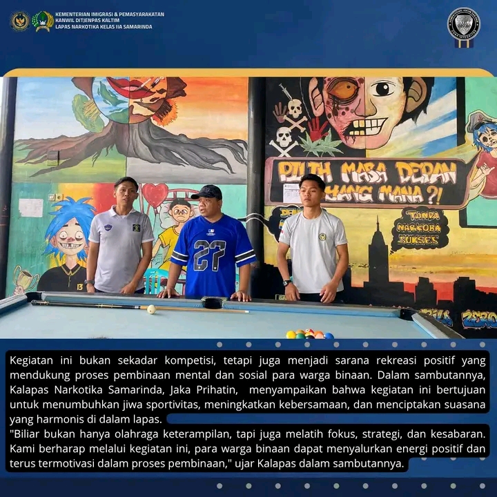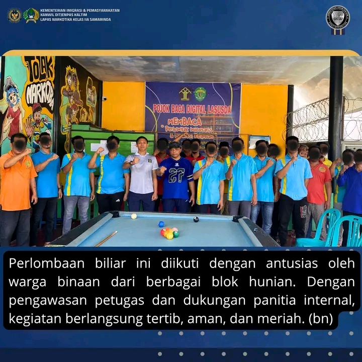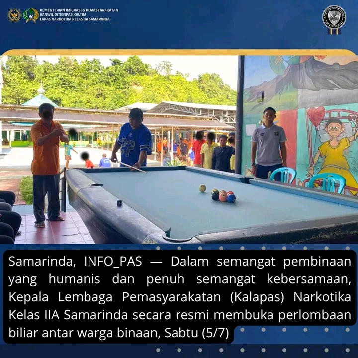TIMELINES INEWS INVESTIGASI, Lapas Narkotika Samarinda, Dalam semangat pembinaan yang humanis dan penuh semangat kebersamaan, Kepala Lembaga Pemasyarakatan (Kalapas) Narkotika Kelas IIA Samarinda secara resmi membuka perlombaan biliar antar warga binaan, Sabtu (05/07/2025)