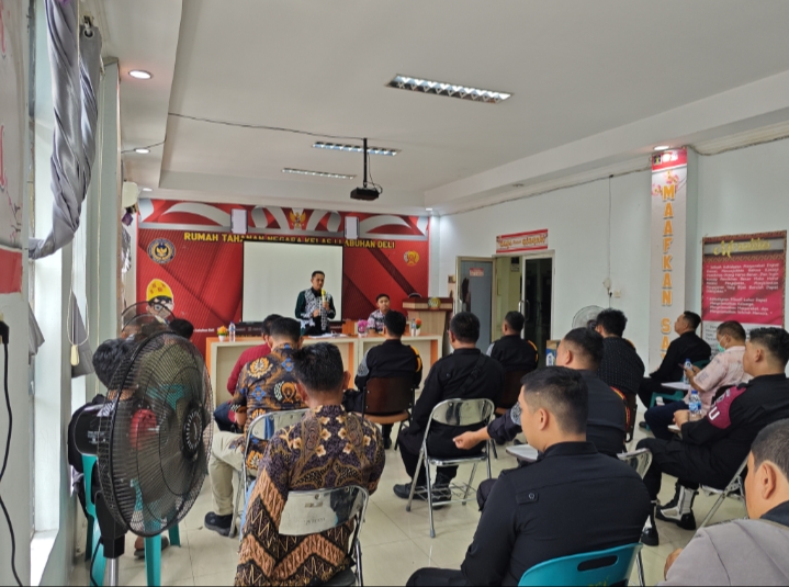 TIMELINES INEWS INVESTIGASI, Rutan Kls I Labuhan Deli Dalam rangka meningkatkan kinerja dan profesionalisme dalam pelaksanaan tugas dan fungsi pengamanan, Kepala Rumah Tahanan Negara (Rutan) Kelas I Labuhan Deli, Eddy Junaedi, memimpin rapat internal bersama jajaran pegawai pengamatan dan pengamanan, yang digelar di Ruangan Moralitas Lantai 2 Rutan, pada Jumat (25/07/25)