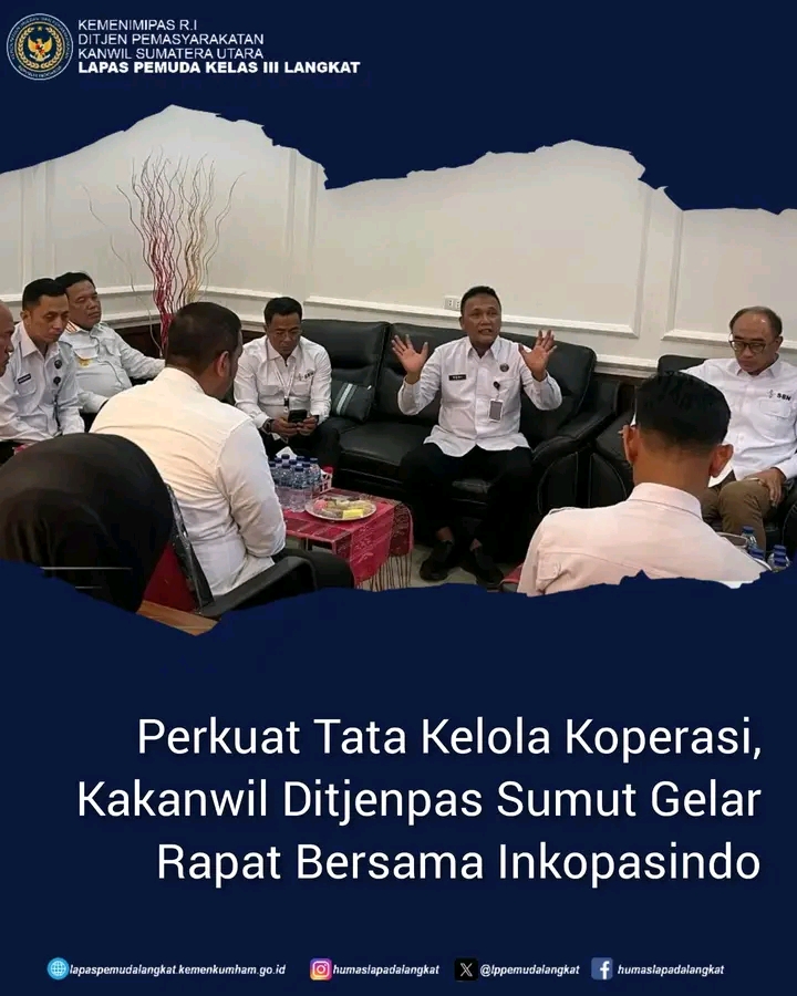 TIMELINES INEWS INVESTIGASI, Medan Kepala Kantor Wilayah Direktorat Jenderal Pemasyarakatan Sumatera Utara, Yudi Suseno, menggelar rapat bersama Inkopasindo dan seluruh Kepala Unit Pelaksana Teknis (UPT) di lingkungan Kanwil Ditjenpas Sumut. Rapat ini membahas penguatan tata kelola koperasi yang berada di Lembaga Pemasyarakatan dan Rumah Tahanan Negara, pada Rabu (30/07).