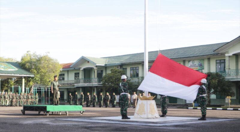 Dalam amanatnya, Letkol Inf Novi Widyanto, S.E. menegaskan bahwa upacara bendera bukan sekadar kegiatan rutin, melainkan refleksi nilai-nilai luhur kebangsaan yang wajib dijaga oleh setiap aparat TNI.