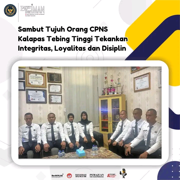 Kehadiran CPNS menambah semangat baru dalam penguatan sumber daya manusia di lingkungan pemasyarakatan khususnya Lapas Tebing Tinggi. Ketujuh CPNS tersebut adalah