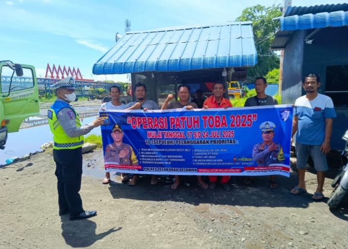 TIMELINES INEWS INVESTIGASI, Belawan, Selasa (15 Juli 2025) Satuan Lalu Lintas (Sat Lantas) Polres Pelabuhan Belawan melaksanakan kegiatan sosialisasi Operasi Patuh Toba 2025 di Jalan Pelabuhan Raya, Kecamatan Medan Marelan. Kegiatan ini menyasar para sopir truk dan pengguna jalan lainnya dalam rangka meningkatkan kesadaran masyarakat akan pentingnya keselamatan, ketertiban, dan kepatuhan dalam berlalu lintas.