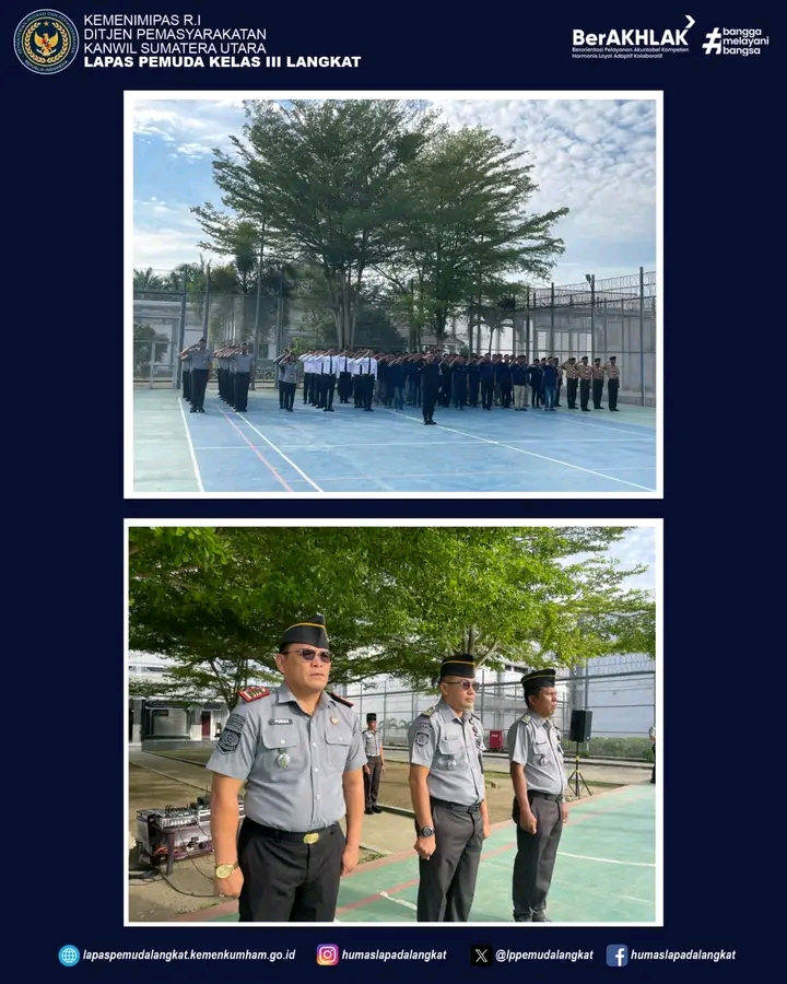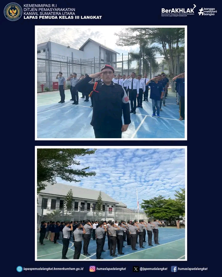 TIMELINES INEWS INVESTIGASI, Langkat Lapas Pemuda Kelas III Langkat melaksanakan upacara rutin hari kesadaran berbangsa dan bernegara rangka menanamkan cinta tanah air serta integritas dalam peri kehidupan, Senin (07/07/2025). Bertempat di Lapangan Upacara Gedung II Lapas Pemuda Langkat.