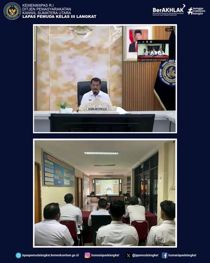 TIMELINES INEWS INVESTIGASI, Langkat Direktur Jenderal Pemasyarakatan Kementerian Imigrasi dan Pemasyarakatan (Kemenimipas), Drs. Mashudi, memberikan pengarahan secara virtual kepada seluruh jajaran pemasyarakatan, Senin (14/07/2025). Kegiatan ini dilaksanakan dalam rangka meningkatkan efektivitas dan efisiensi pelaksanaan tugas serta mengidentifikasi area perbaikan secara berkelanjutan.