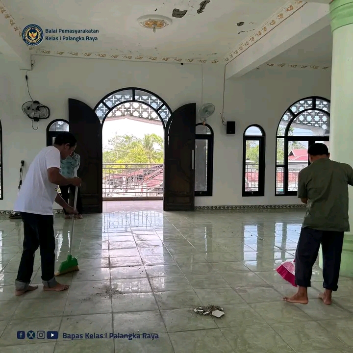 Sebanyak 11 klien pemasyarakatan dilibatkan dalam aksi ini. Selain melakukan pembersihan area masjid, para klien juga menerima paket sembako yang diserahkan langsung oleh Kepala Bapas Palangka Raya. Kegiatan ini menjadi momen interaksi yang hangat, memperkuat hubungan baik antara petugas, klien, dan masyarakat, Pungkasnya.