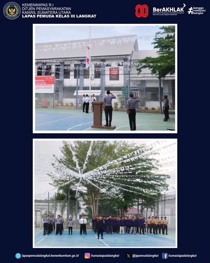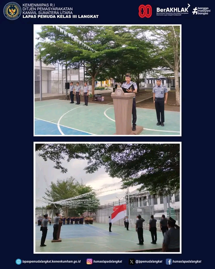 TIMELINES INEWS INVESTIGASI, Langkat Lapas Pemuda Kelas III Langkat melaksanakan upacara rutin hari kesadaran berbangsa dan bernegara rangka menanamkan cinta tanah air serta integritas dalam peri kehidupan, Senin (25/08/2025). Bertempat di Lapangan Upacara Gedung II Lapas Pemuda Langkat.