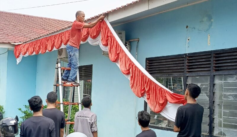 Gotong royong dalam rangka menyambut dan menyemarakkan HUT Ke-80 Kemerdekaan RI di Diskominfo Kota Langsa. (Foto : Humas Diskominfo Langsa)