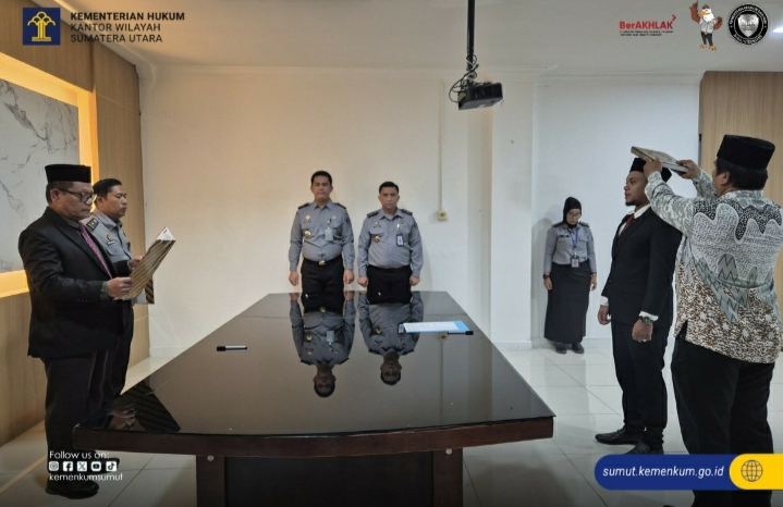 TIMELINES INEWS INVESTIGASI, Medan, 05 Agustus 2025 Kepala Divisi Pelayanan Hukum Kantor Wilayah Kementerian Hukum dan HAM Sumatera Utara, Sahata Marlen Situngkir, resmi melantik Muhammad Faisal Siregar, S.H., M.Kn. sebagai Notaris Pengganti di Kota Medan. Prosesi pelantikan dan pengambilan sumpah jabatan berlangsung di Ruang Rapat Divisi Pelayanan Hukum Kanwil Kemenkumham Sumut.