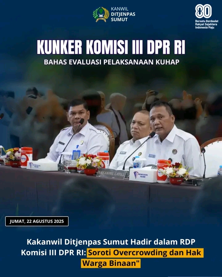 Sementara itu, Kakanwil Ditjenpas Sumut, Yudi Suseno menyampaikan masukan penting terkait dinamika pemasyarakatan di tengah pembahasan RUU KUHAP.
