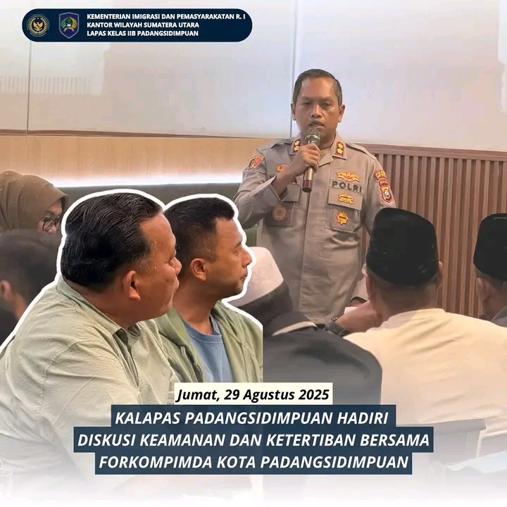 TIMELINES INEWS INVESTIGASI, Padangsidimpuan Kepala Lembaga Pemasyarakatan (Kalapas) Kelas IIB Padangsidimpuan turut hadir dalam diskusi strategis yang diselenggarakan oleh Kepolisian Resor (Polres) Padangsidimpuan, yang membahas situasi keamanan dan ketertiban serta langkah-langkah antisipatif terhadap potensi gangguan yang mungkin terjadi, khususnya dalam menyikapi perkembangan aksi unjuk rasa yang terjadi dalam beberapa hari terakhir. Jumat (29/08/2025)