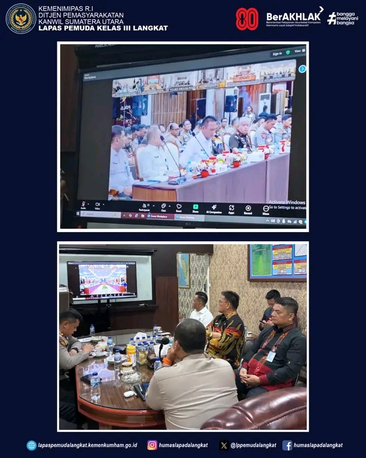 TIMELINES INEWS INVESTIGASI, Langkat Kalapas Pemuda Kelas III Langkat, Kenal Purba menghadiri kegiatan kunjungan kerja Komisi III Dewan Perwakilan Rakyat Republik Indonesia (DPR RI) dalam rangka evaluasi pelaksanaan Hukum Acara Pidana (KUHP) secara Virtual Zoom di Ruangan Kapolres Langkat, Jumat (22/08/2025) Pukul 10.00 WIB.
