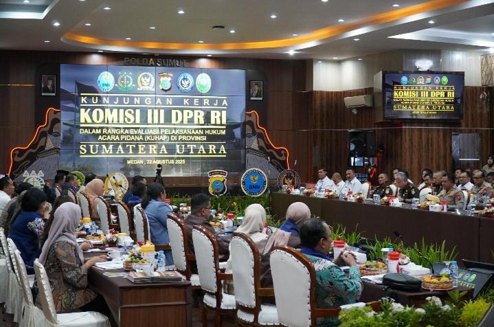 TIMELINES INEWS INVESTIGASI, Medan, 22 Agustus 2025 Karutan Kelas I Medan, Andi Surya Hadir dalam Kegiatan Rapat Dengar Pendapat (RDP) Komisi III DPR RI dalam rangka evaluasi pelaksanaan Kitab Undang-Undang Hukum Acara Pidana (KUHAP) berlangsung di Aula Tribrata Kepolisian Daerah (Polda) Sumatera Utara dengan dihadiri seluruh Forkopimda Sumut.