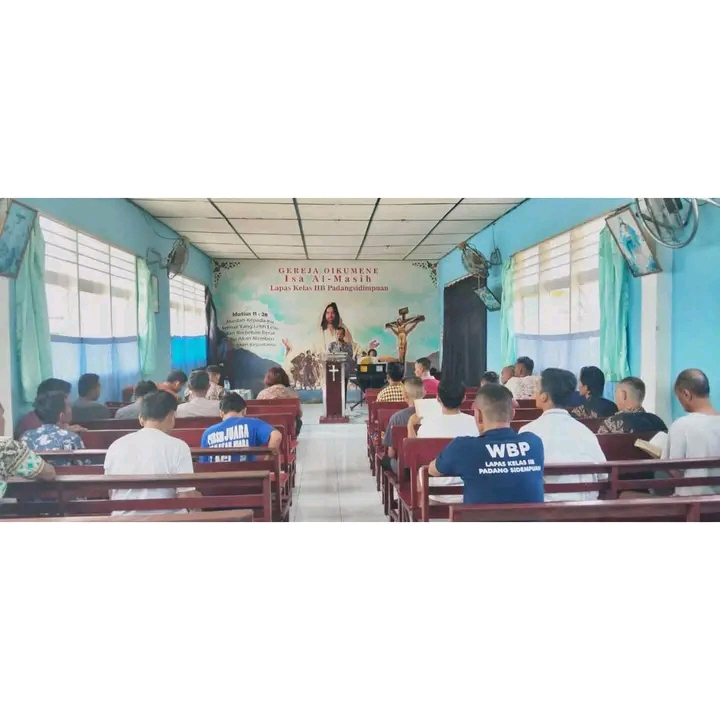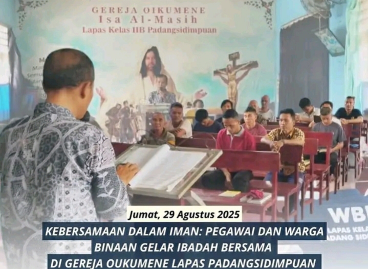 TIMELINES INEWS INVESTIGASI, Lapas Padangsidimpuan Suasana khidmat dan penuh kekeluargaan terasa di Gereja Oukumene Lapas Padangsidimpuan saat para pegawai bersama warga binaan menggelar kegiatan ibadah bersama pada hari Jumat, (29/08/2025). Kegiatan ini merupakan bagian dari pembinaan kerohanian yang rutin dilaksanakan oleh pihak lembaga pemasyarakatan untuk mendukung pertumbuhan spiritual dan memperkuat nilai-nilai keagamaan di lingkungan lapas.