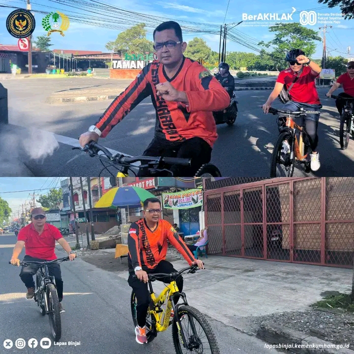 Kegiatan ini diikuti langsung oleh Kepala Lapas Kelas IIA Binjai, Wawan Irawan, beserta para pejabat struktural dan seluruh jajaran petugas. Sejak pukul 08.30 WIB, para peserta telah berkumpul di halaman depan Lapas sebagai titik start. Dengan penuh semangat, rombongan bersepeda menyusuri rute yang telah ditentukan dan mengakhiri kegiatan dengan sarapan bersama.