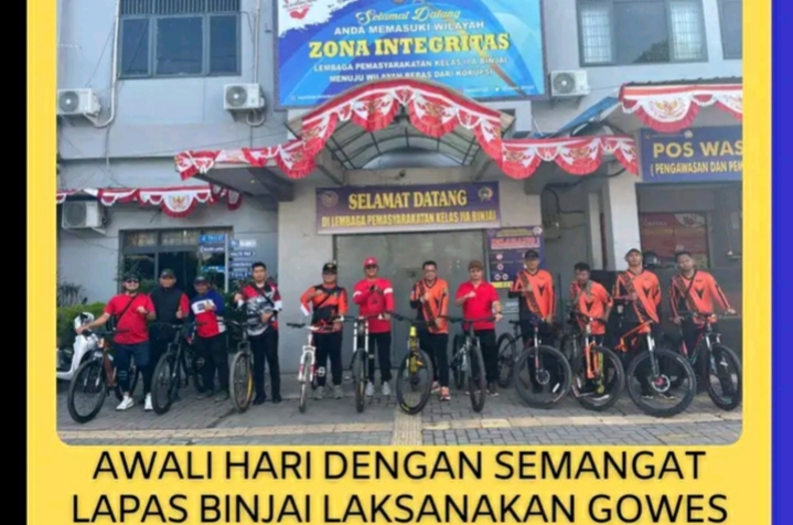 TIMELINES INEWS INVESTIGASI, Lapas Binjai, 30 Agustus 2025 Lembaga Pemasyarakatan (Lapas) Kelas IIA Binjai melaksanakan kegiatan gowes atau sepeda santai berkeliling Kota Binjai sebagai upaya meningkatkan kekompakan dan kebugaran petugas, Sabtu (30/8).