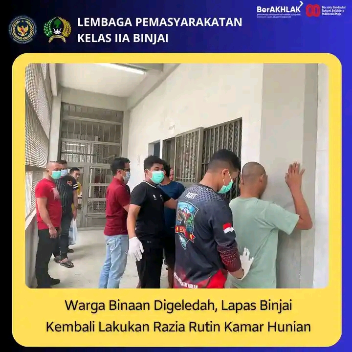 TIMELINES INEWS INVESTIGASI, Binjai Lembaga Pemasyarakatan (Lapas) Kelas IIA Binjai melaksanakan razia kamar hunian warga binaan pada Sabtu malam (23/08/2025) sekitar pukul 23.30 WIB. Kegiatan ini bertujuan untuk menciptakan lingkungan Lapas yang bebas dari handphone, pungutan liar, dan narkoba, sekaligus sebagai langkah deteksi dini terhadap potensi gangguan keamanan dan ketertiban.