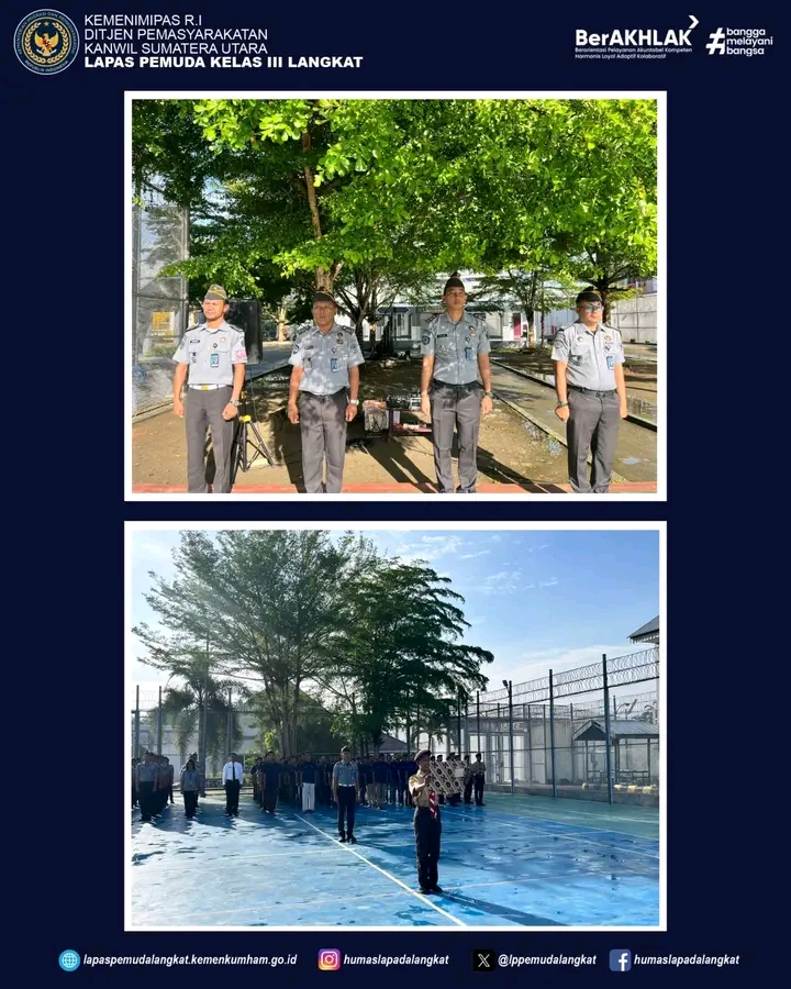 TIMELINES INEWS INVESTIGASI, Langkat Lapas Pemuda Kelas III Langkat melaksanakan upacara rutin hari kesadaran berbangsa dan bernegara rangka menanamkan cinta tanah air serta integritas dalam peri kehidupan, Senin (28/07/2025). Bertempat di Lapangan Upacara Gedung II Lapas Pemuda Langkat.