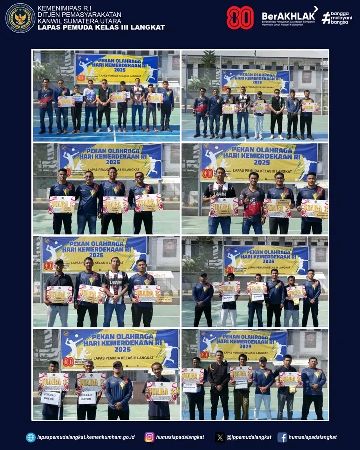Hadiah lomba diberikan untuk WBP dan petugas yang telah berhasil memenangkan pertandingan Futsal, Voli, Badminton, Tenis Meja, Catur dan juga Gaple. Terlihat raut wajah yang sangat senang dari WBP dan petugas yang berhasil memenangkan lomba saat penyerahan hadiah dilakukan. Acara perlombaan ini sudah berlangsung dari tanggal 9 Agustus 2025.