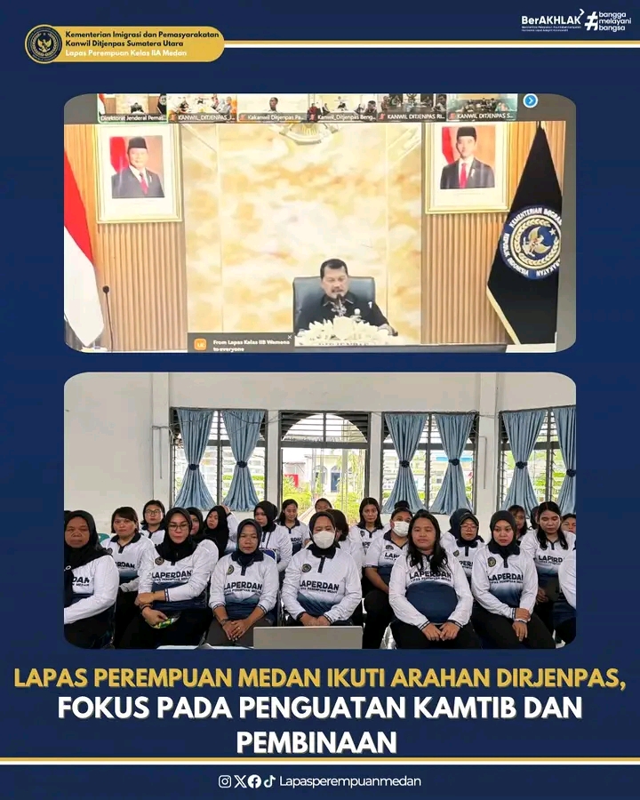TIMELINES INEWS INVESTIGASI, Medan Lapas Perempuan Kelas IIA Medan mengikuti pengarahan yang disampaikan Direktur Jenderal Pemasyarakatan (Dirjenpas) kepada seluruh Unit Pelaksana Teknis (UPT) Pemasyarakatan se-Indonesia melalui Zoom Meeting pada Jumat (29/8).