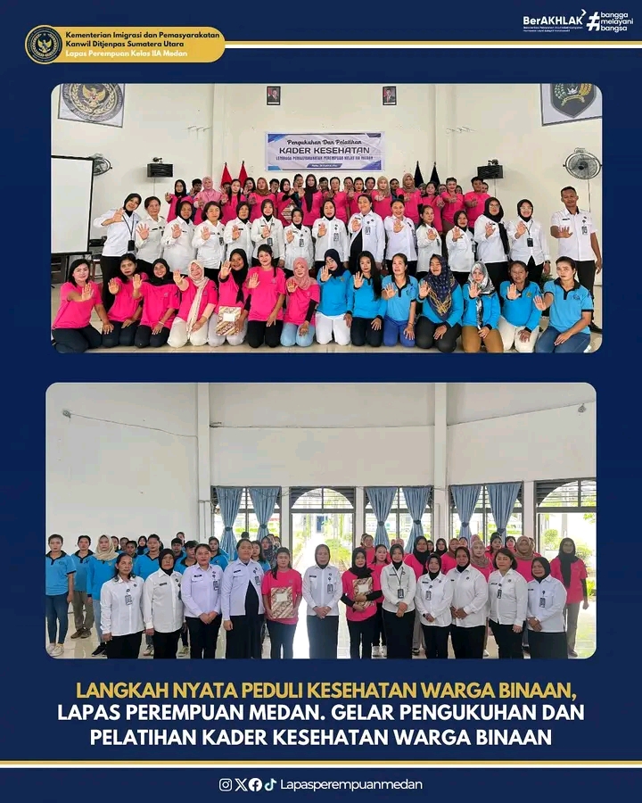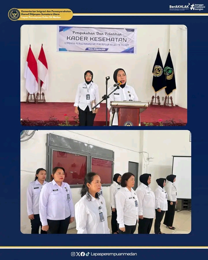 TIMELINES INEWS INVESTIGASI, Medan Sebagai bentuk kepedulian terhadap kesehatan warga binaan, Lembaga Pemasyarakatan (Lapas) Perempuan Kelas IIA Medan menggelar kegiatan Pengukuhan dan Pelatihan Kader Kesehatan Warga Binaan, Kamis (28/08). Kegiatan ini merupakan langkah nyata dalam upaya promotif dan preventif untuk meningkatkan kualitas kesehatan di lingkungan Lapas.