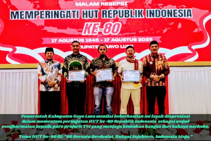 Pemerintah Kabupaten Gayo Lues menilai keberhasilan ini layak diapresiasi dalam momentum peringatan HUT ke-80 Republik Indonesia sebagai wujud penghormatan kepada para prajurit TNI yang menjaga keutuhan bangsa dari bahaya narkoba.