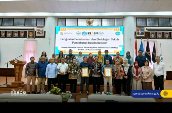 TIMELINES INEWS INVESTIGASI, Medan, 21 Agustus 2025 Direktorat Jenderal Kekayaan Intelektual (DJKI) Kementerian Hukum RI melalui Kantor Wilayah Kementerian Hukum Sumatera Utara melaksanakan kegiatan Penguatan Pemahaman dan Bimbingan Teknis Pendaftaran Desain Industri di Universitas Negeri Medan (UNIMED), Kamis (21/8).