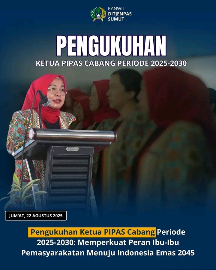 TIMELINES INEWS INVESTIGASI, Langkat Rayon 3 sukses menyelenggarakan kegiatan pengukuhan Ketua Paguyuban Ibu-Ibu Pemasyarakatan (PIPAS) Cabang periode 2025-2030 yang dilaksanakan di Lapas Narkotika Kelas IIA Langkat. Kegiatan yang berlangsung pada hari Jumat ini sekaligus menjadi ajang pertemuan rutin Paguyuban Ibu-Ibu Pemasyarakatan Sumatera Utara dengan mengusung tema “Dengan Semangat Perjuangan 45, PIPAS Berkarya dan Bermanfaat untuk Masyarakat Menuju Indonesia Emas 2045”, pada Jum’at (22/08).