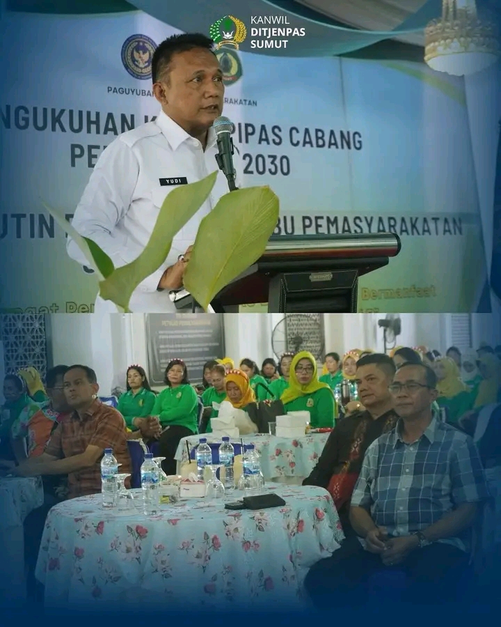 Acara diawali dengan sambutan secara resmi oleh Kepala Kantor Wilayah Direktorat Jenderal Pemasyarakatan Sumatera Utara, Bapak Yudi Suseno, yang menegaskan bahwa PIPAS memiliki peran strategis dalam mendukung program pemasyarakatan sekaligus berkontribusi dalam pemberdayaan masyarakat. “Peran ibu-ibu PIPAS sangat vital sebagai mitra kerja yang mendukung pemasyarakatan yang humanis dan berdaya guna. Melalui pengukuhan ketua cabang yang baru ini, saya berharap sinergi dan kolaborasi dapat semakin diperkuat untuk kemajuan bersama,” ujar Yudi Suseno.