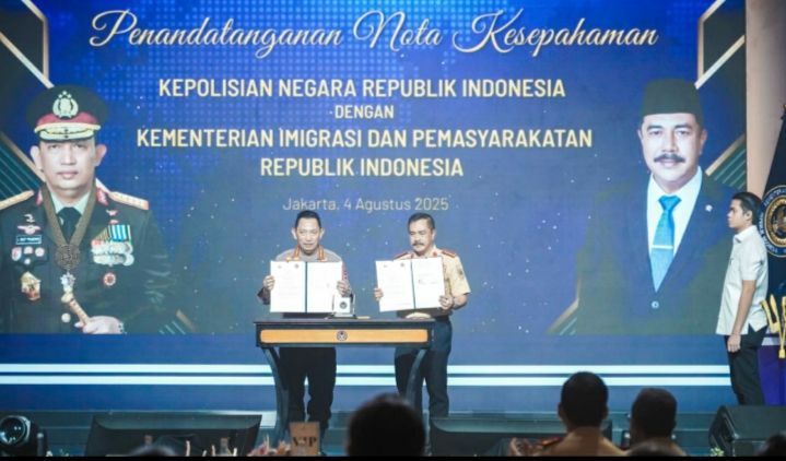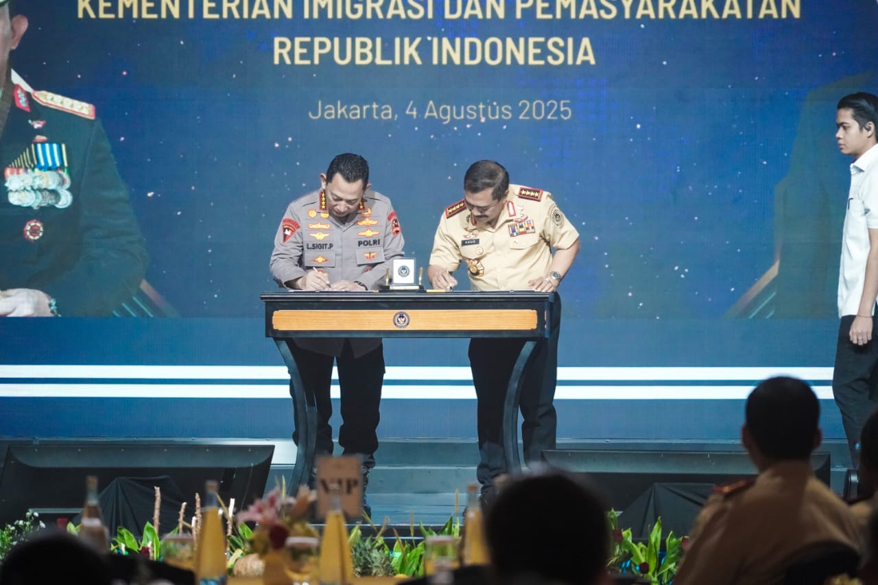 TIMELINES INEWS INVESTIGASI, Jakarta Kementerian Imigrasi dan Pemasyarakatan (Kemenimipas) memperkuat kerja sama dengan Kepolisian Republik Indonesia (Polri) dalam rangka memperkuat sinergi tugas dan fungsi di bidang keimigrasian, pemasyarakatan, dan kepolisian melalui penandatanganan nota kesepahaman dan perjanjian kerja sama, Senin (4/8). Penandatanganan dilaksanakan oleh Menteri Imipas Agus Andrianto dan Kapolri Listyo Sigit Prabowo, menjadi bagian dari rangkaian kegiatan dalam Rapat Koordinasi Dukungan Manajemen Kemenimipas yang dilaksanakan di Hotel Shangri-La Jakarta.