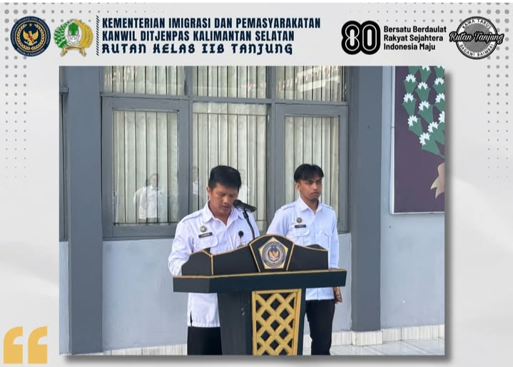 Kepala Kesatuan Pengamanan Rutan (Ka.KPR) Rutan Tanjung, Syamsuri, bertindak sebagai inspektur upacara. Dalam amanatnya, ia menegaskan pentingnya menjunjung tinggi nilai-nilai Pancasila dan Undang-Undang Dasar 1945 sebagai pedoman dalam menjalankan tugas sebagai abdi negara. Hal ini juga menjadi bagian dari upaya menumbuhkan rasa nasionalisme, meningkatkan kedisiplinan, dan memperkuat integritas, terutama setelah selesainya rangkaian peringatan HUT Ke-80 Kemerdekaan Republik Indonesia.