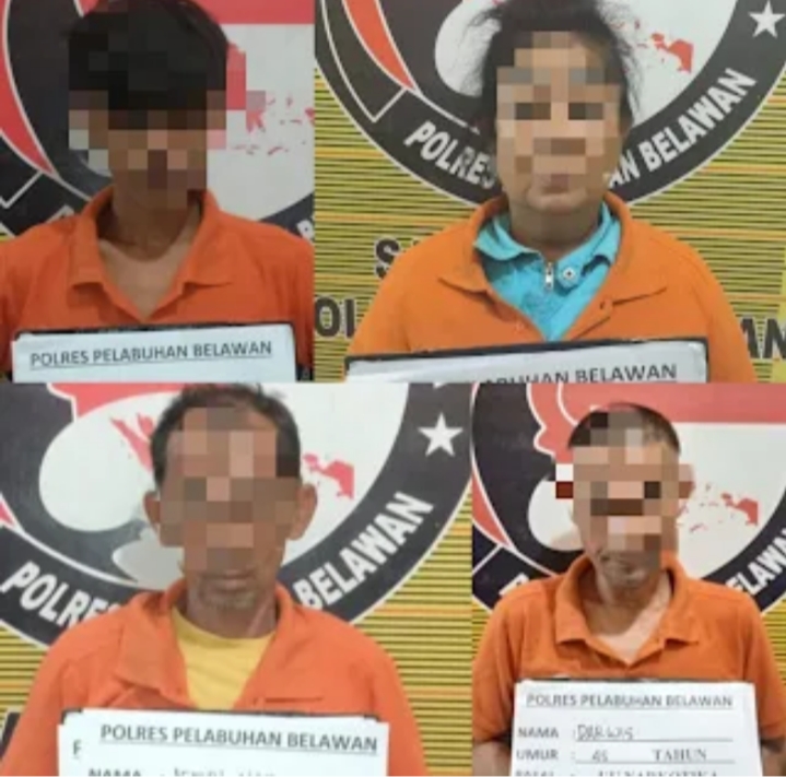 Dalam operasi tersebut, petugas mengamankan empat orang tersangka, yakni tiga orang pengedar Rifka (64), Darwis (45), dan Maulana (21) serta seorang pengguna Jefri (42).