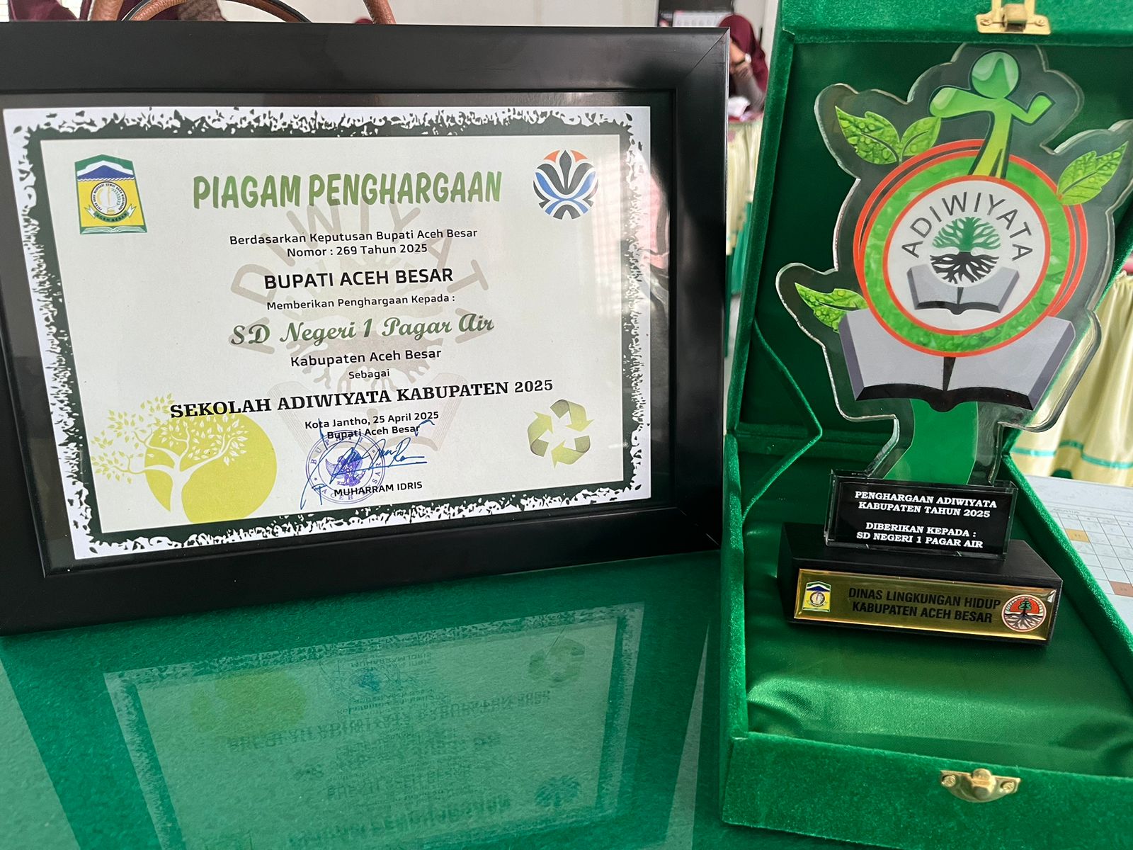 Penghargaan ini menjadikan SDN 1 Pagar Air sebagai SDN terbaik sekolah berbudaya lingkungan dan peduli lingkungan se- kabupaten Aceh Besar.