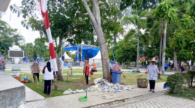 Kota Langsa – Sigap, Petugas Kebersihan Dinas Lingkungan Hidup (DLH) Kota Langsa langsung tancap gas bersihkan area Jalan Santai PANWalk yang berlangsung meriah dan berpusat di Lapangan Merdeka setempat, Minggu 31 Agustus 2025.
