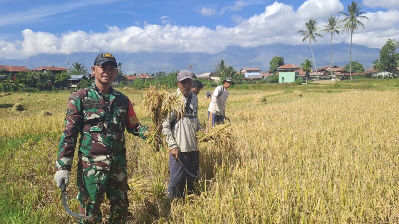 TLii | ACEH | Babinsa Posramil Dabungelang Koramil 03/Blangkejeren Serka Raden melaksanakan pendampingan kepada petani saat memanen padi di Desa Badak, Kecamatan Dabungelang, Kabupaten Gayo Lues. Jumat (29/08/2025)