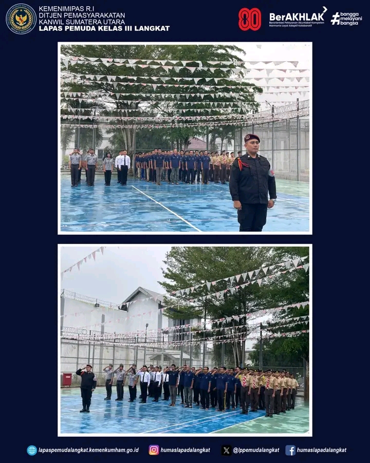 TIMELINES INEWS INVESTIGASI, Langkat Dalam rangka menumbuhkan rasa bela negara dan menanamkan nilai nilai kebangsaan kepada warga binaan melalui pelaksanaan upacara kesadaran berbangsa dan bernegara yang dilaksanakan secara rutin untuk mendidik jiwa nasionalisme yang tinggi kepada warga binaan serta untuk memupuk disiplin dan tanggung jawab yang dimiliki sebagai insan yang berakhlak, Senin (11/08/2025) di lapangan Upacara Gedung II Lapas Pemuda Langkat.