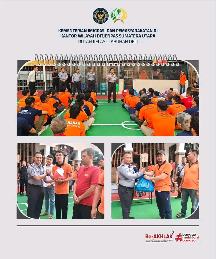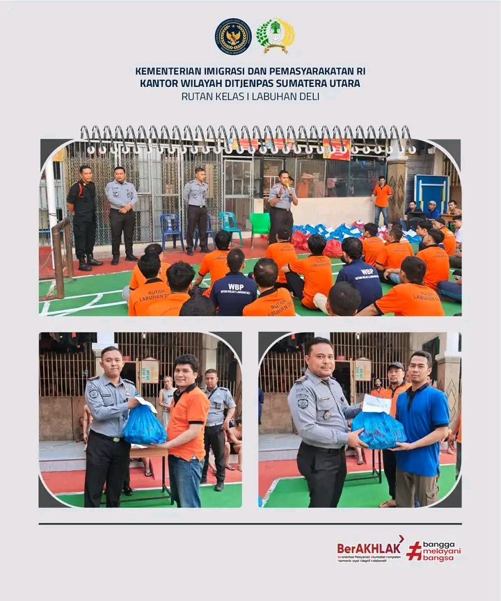 TIMELINES INEWS INVESTIGASI, Rutan Kls I Labuhan Deli, 26 Agustus 2025 Rumah Tahanan Negara (Rutan) Kelas I Labuhan Deli kembali menunjukkan komitmennya dalam memberikan pelayanan terbaik bagi warga binaan dengan menggelar kegiatan pembagian alat mandi. Kegiatan ini dilaksanakan di lapangan blok hunian Rutan Labuhan Deli dan dipimpin langsung oleh Kepala Rutan, Bapak Eddy Junaedi, didampingi para pejabat struktural.