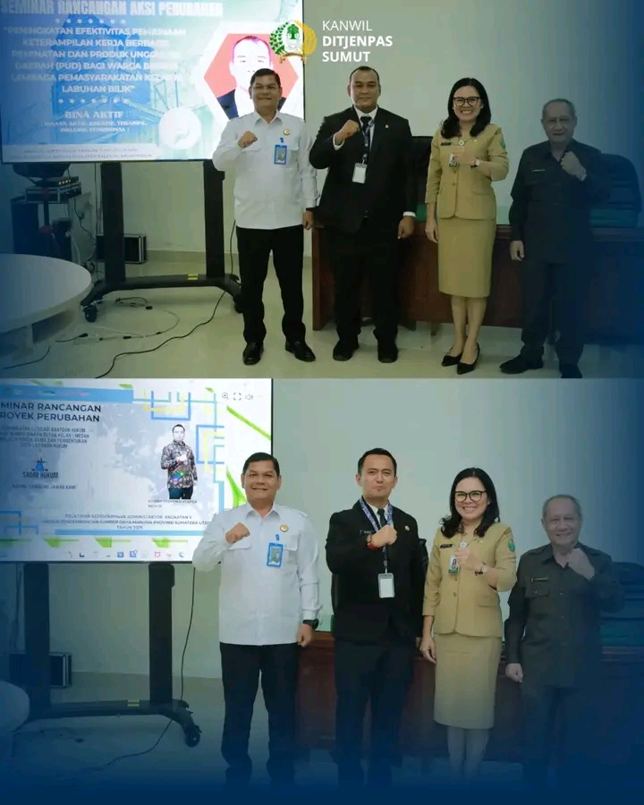 “Kanwil Ditjenpas Sumatera Utara sangat mendukung penuh setiap rencana aksi perubahan yang dipaparkan para peserta. Melalui aksi perubahan ini, diharapkan lahir terobosan-terobosan yang mampu memperbaiki tata kelola dan meningkatkan pelayanan publik.